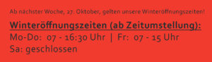 Kieswerk: Mo-Do: 07-16:30 | Fr: 07-15:00 | Sa: -